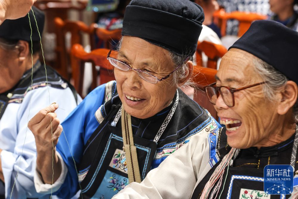 8月26日,贵阳市花溪区青岩镇山王庙村的妇女在接受刺绣指导中互相交流。