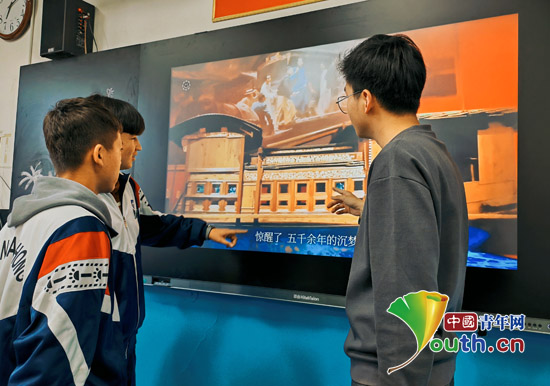 “大家要在这些珍贵的文物中寻觅出答案......”研支团成员打造原创思政互动视频,以“青年大学习”互动答题模式,通过15分钟的第一视角,带领同学们“云研学”“云参观”中国共产党历史展览馆,同学们争先恐后地回答了视频中的14个党史问题,在全景沉浸式的展览体验中,不断汲取奋进力量。