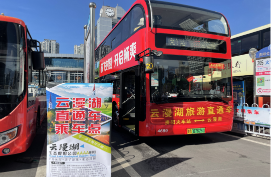 8月11日,贵阳市区花果园兰花广场、火车站至贵安新区云漫湖生态度假公园的一站式旅游直通车正式开通。