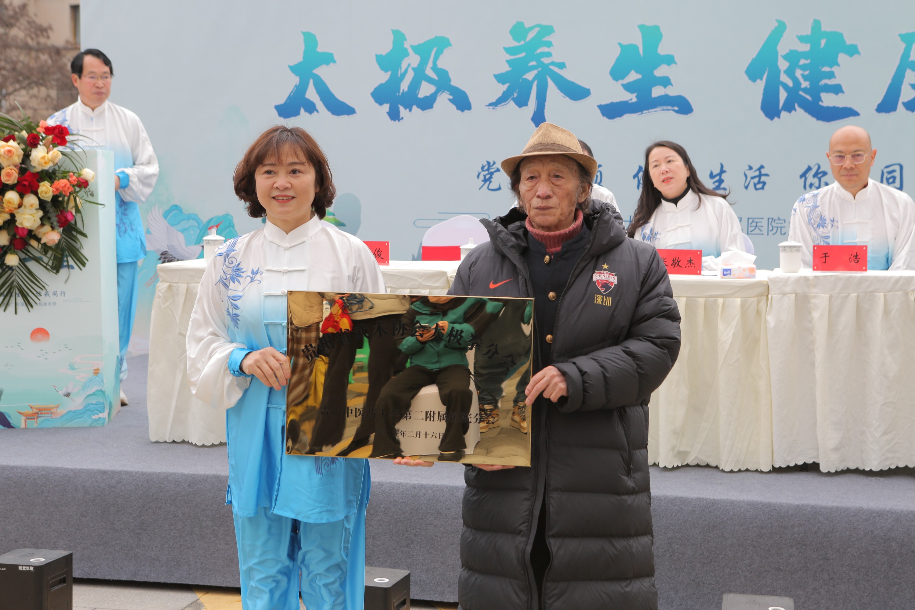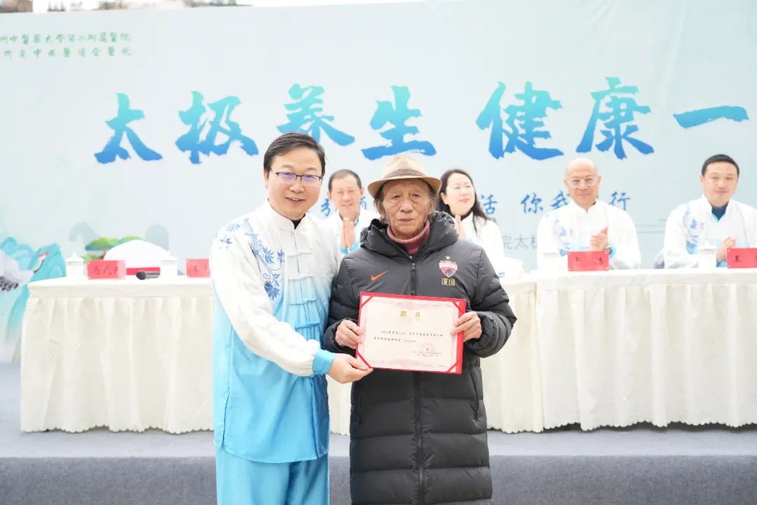 贵州省太极拳协会会长李克俊宣布“贵州省太极拳协会贵州中医药大学第二附属医院分会”成立并授牌,肖政华也向李克俊颁发“贵州中医药大学第二附属医院太极拳协会”名誉总教练证书。