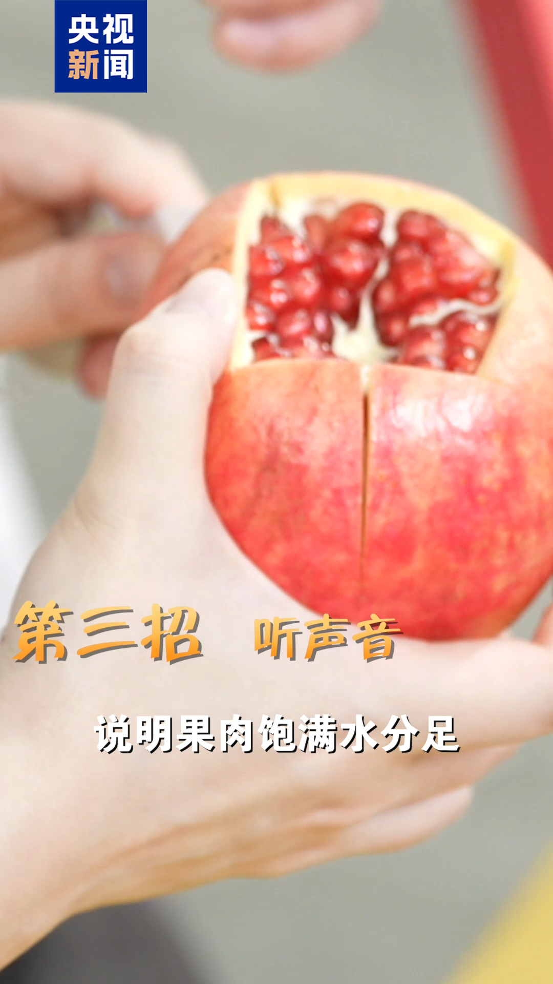 拿起石榴,用指节轻轻敲一敲。如果声音是浑厚的“咚咚响”,说明果肉饱满,水分足;要是声音发空、发脆,那里面可能果肉稀疏,甚至已经空心了。在工厂里往往会通过拍“X光”给石榴做CT,黑心空心(石榴)通通逃不掉。