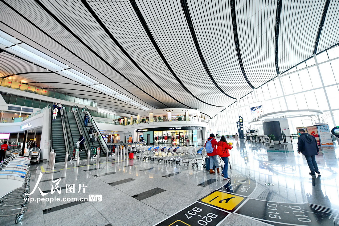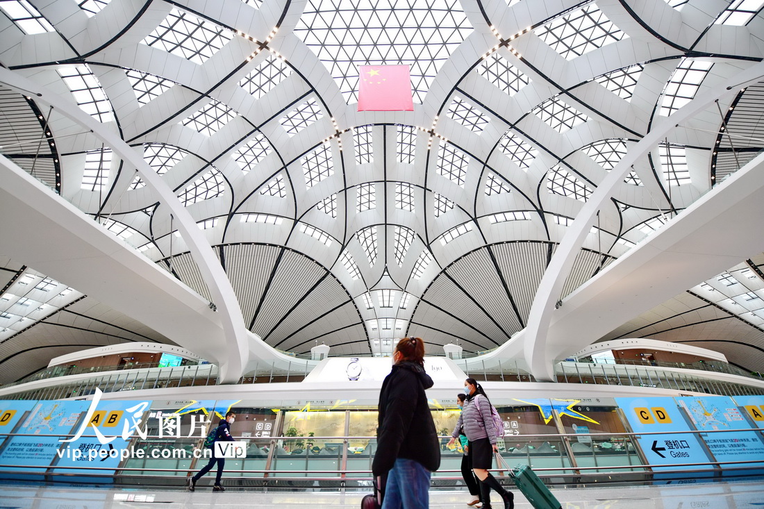 1月7日,2023年春运正式拉开帷幕,今年春运自1月7日开始至2月15日结束,共计40天。随着疫情形势及防控政策的调整和国内航线燃油附加费大幅下调,预计2023年春运期间,返乡探亲、旅行等旅客出行需求有明显增加,大兴国际机场业务量将快速恢复。朱海鹏摄(人民图片网)