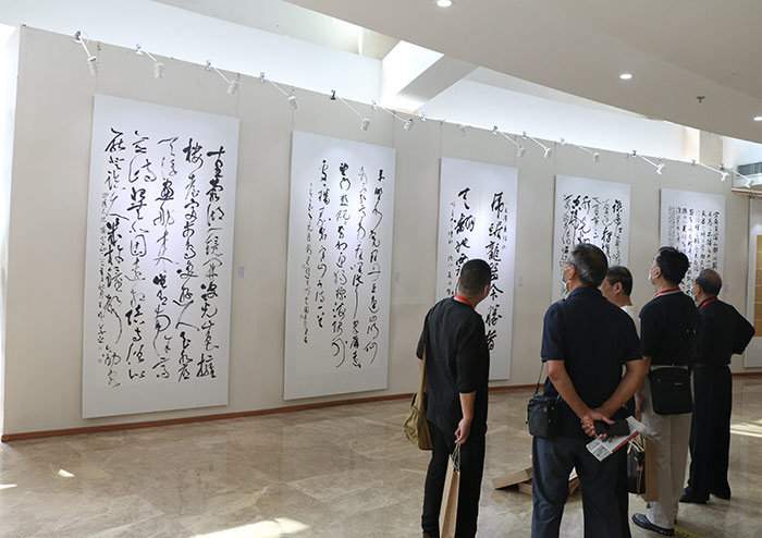 2021年是无锡市书协成立40周年,为更好地展示无锡书法作品创作和学术研究成果,扩大无锡书法的影响力,特于2022年举行此次展览。展览汇集无锡书法界老中青三代书法家,堪称无锡书界最强阵容,其中既有当代无锡书坛的标志性人物,也有一批功底扎实、颇具潜力的后起之秀,展出作品100件,其中书法作品75件、篆刻作品19件、刻字作品6件,作品以歌颂无锡的历史人文、自然风光为主题,形式丰富,是无锡书法界长期以来植根传统、传承经典、勇于创新实践的成果,既显示了深厚扎实的艺术功力,又呈现了创新发展的新颖形式。此外,展览展出了《晋唐名帖考辨》《名帖考》、三卷本《无锡书法论文集》、《敦煌书法史》丛书、《楚默全集》等一系列无锡书法理论研究成果,展现了无锡市书协坚持书法创作与理论研究工作齐头并进所取得的成绩。
