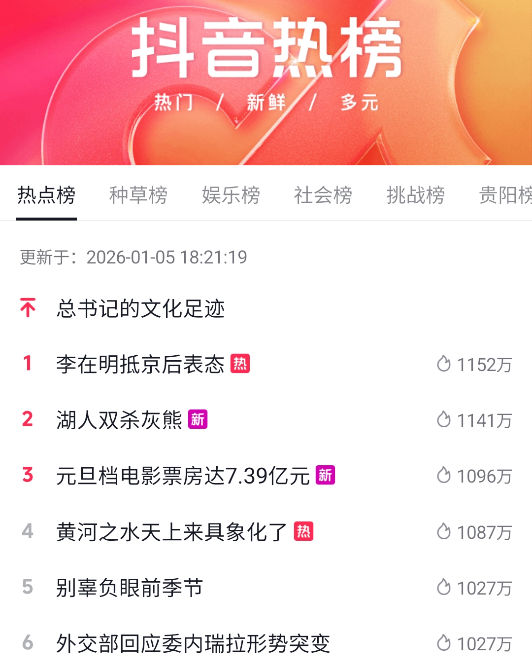 打开动静新闻客户端,刷动静听新闻。社交媒体热点打捞,洞悉社会情绪,最后来看各大热榜,明天再见!
