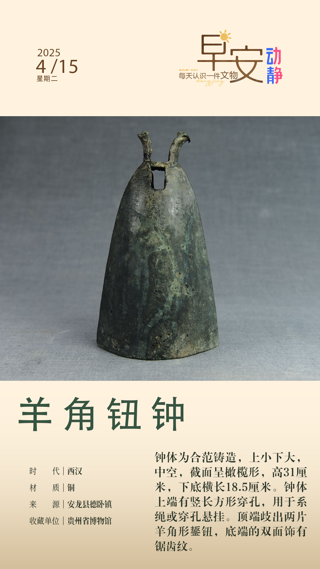 早安丨每天认识一件文物:羊角钮钟