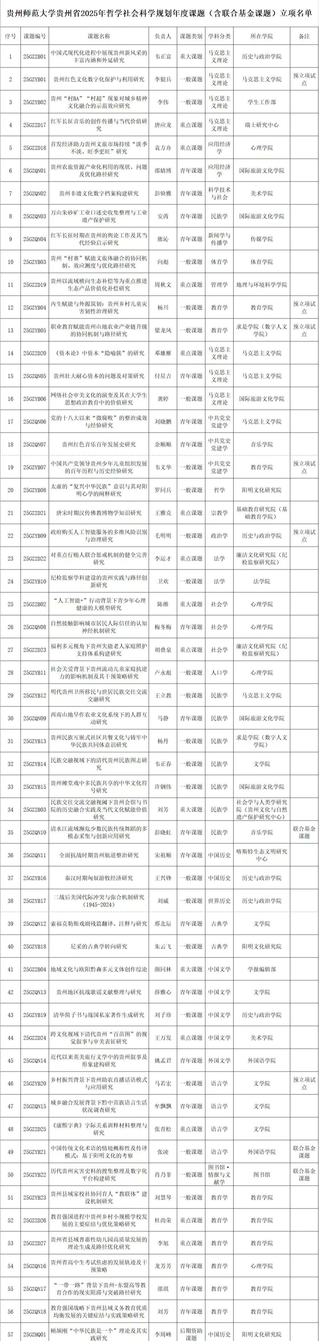 贵州省2025年哲学社会科学规划年度课题立项名单