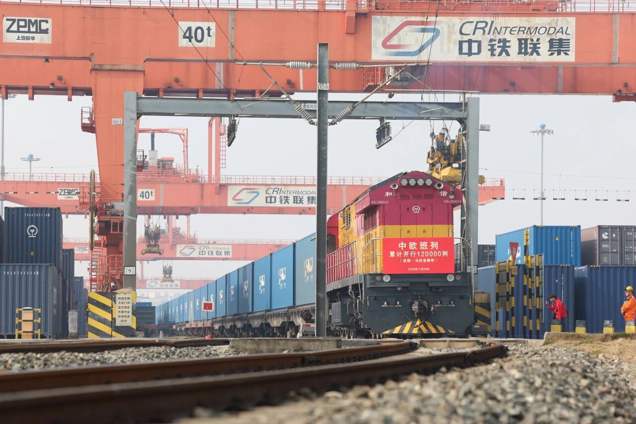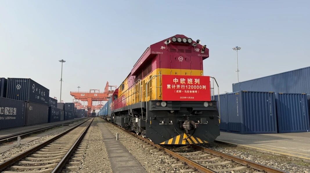 2025年11月28日12时13分,随着开往波兰马拉舍维奇的X8086次中欧班列从中国成都国际铁路港发车,中欧班列累计开行突破12万列,发送货值超4900亿美元。中欧班列高质量发展取得新成效,品牌价值得到全球认可。
