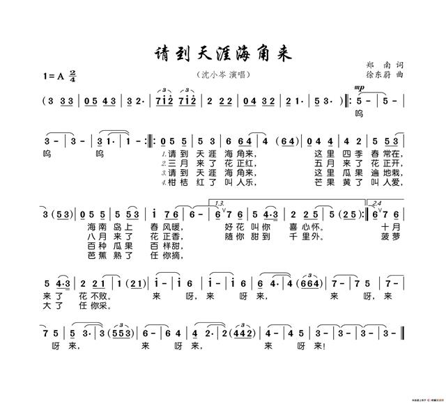 就让我们再次唱响这首隽永的歌谣,听听由丁晓红演唱的这个版本的《请到天涯海角来》,以此纪念为新中国的音乐事业贡献了毕生精力的老一辈音乐人,也邀请你乘着音乐的翅膀,来天高云阔的海南岛做客。