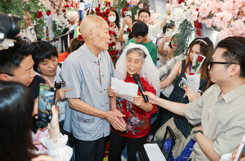 活动现场,在“开满”鲜花的车厢内,市民朋友纷纷前往打卡拍照留念,旅客们也分享着自己的故事。一对老人迎来了他们的50周年金婚,一位列车上的小朋友大声向父母表达爱意,各式各样“花式告白”动人心弦……伴随乐队的演奏,旅客们瞬间点燃了参与活动的热情,挥舞着双手载歌载舞,尽享520专列带来的音乐盛宴。