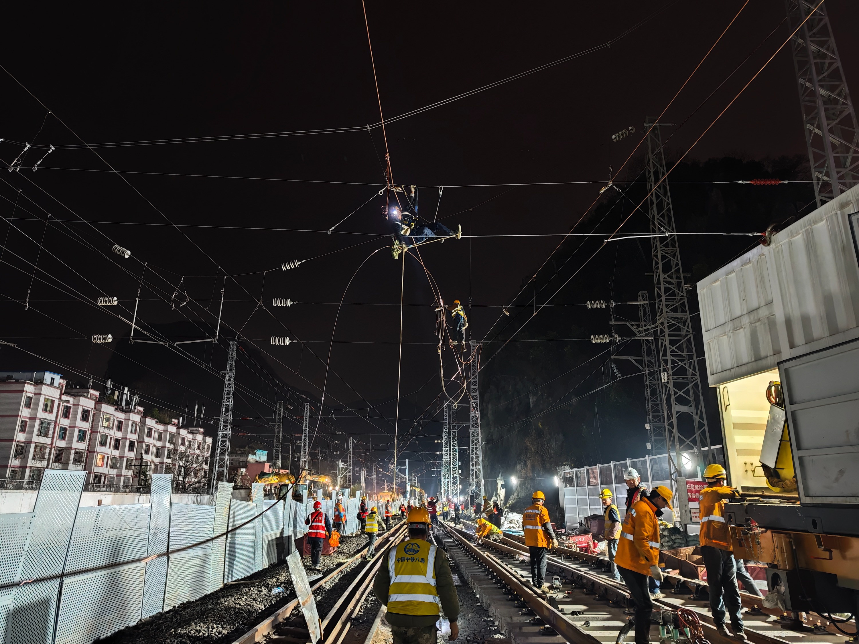 六盘水站作为沪昆铁路重要交通枢纽,此次施工还面临多专业交叉协调复杂的难题。电务公司严格执行营业线施工规范,采用“分阶段插入试验+集中倒替开通”模式,科学统筹天窗资源,有序推进软件及设备插入试验,同时实施全流程安全盯控。“通过建立多方协调机制,确保信号、通信、信息、电力、接触网等多专业无缝衔接,施工人员昼夜连续奋战、精调细测,全力保障各项技术指标达标,实现施工全过程安全可控。”