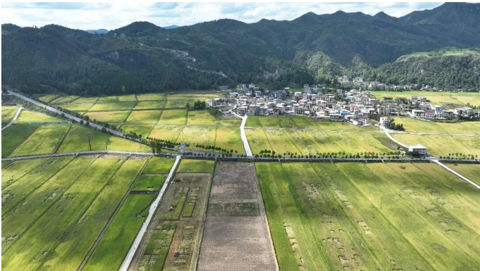 国道352线贯穿水稻高效种植示范基地