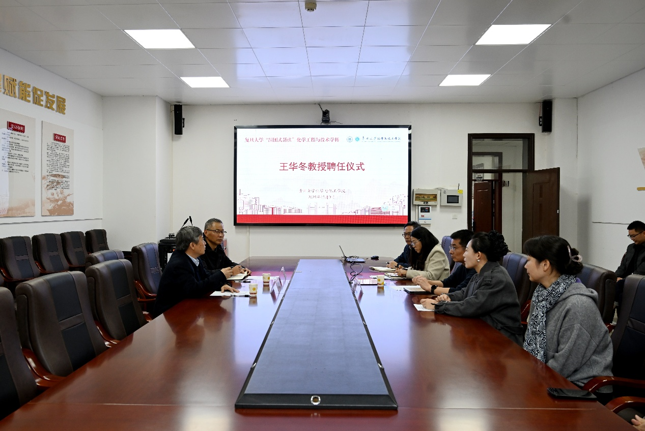 2025年12月9日上午,复旦大学王华冬受聘贵州大学化学与化工学院教授聘任仪式举行。中国工程院院士、贵州大学校长宋宝安,副校长王锦荣,学院领导班子及各党支部书记、教研室主任和全体行政人员出席仪式。会议由贵州大学化学与化工学院党委书记杨静主持。
