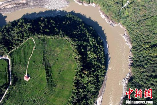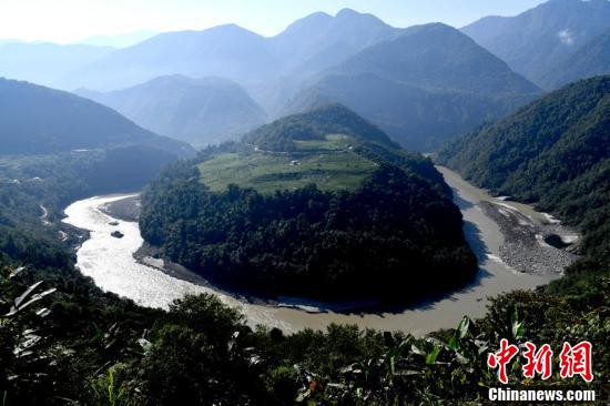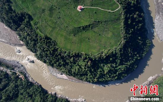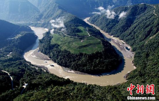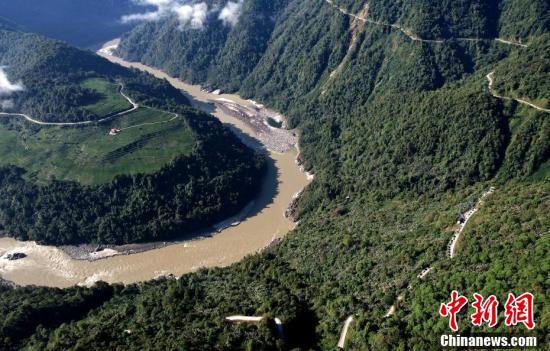 5月13日,航拍西藏林芝市墨脱县雅鲁藏布江果果塘大拐弯,景色雄奇壮观。(无人机照片)