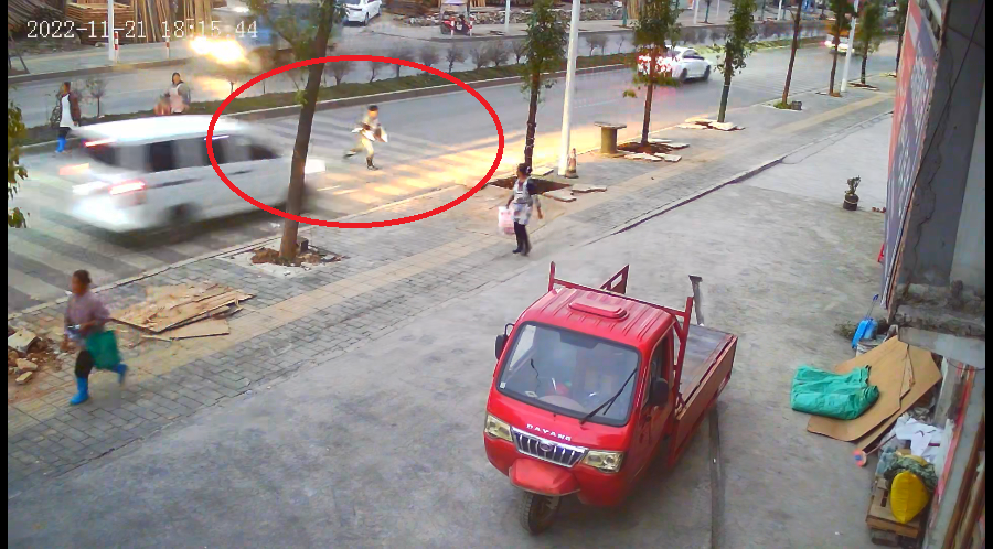 被疾驰而过的面包车撞“飞”