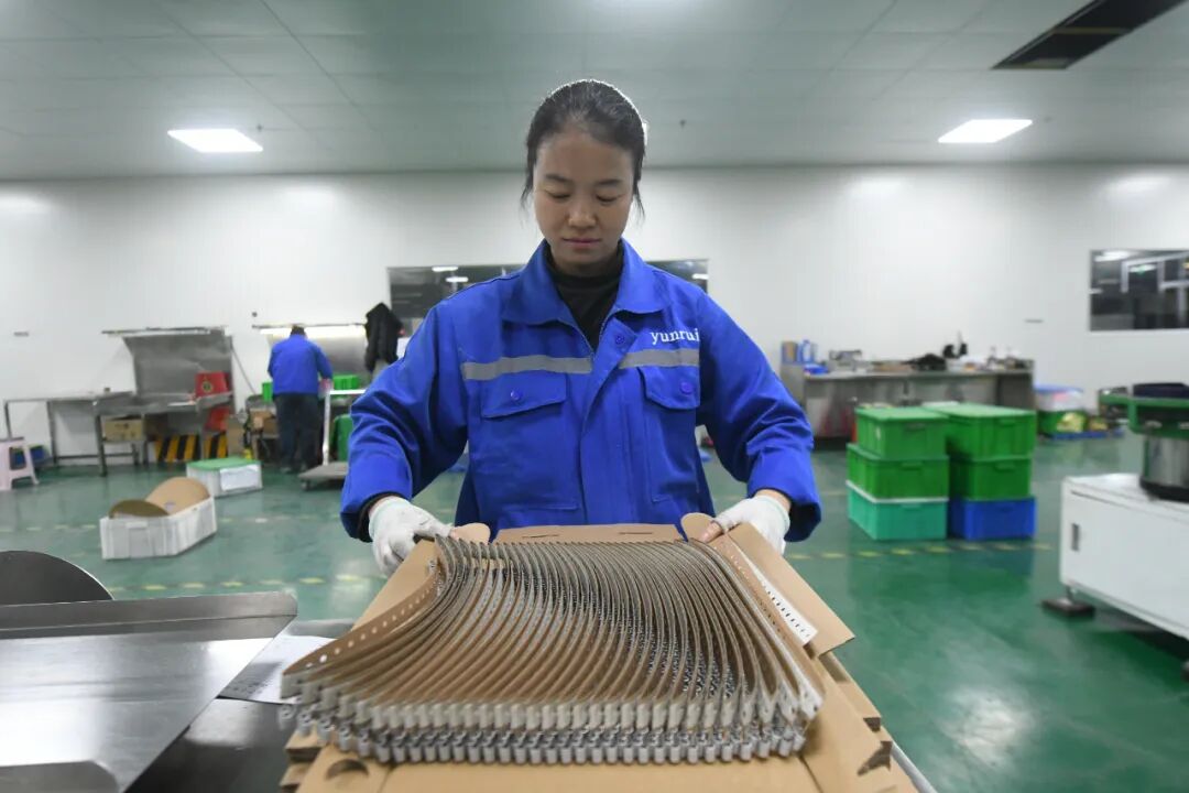 “第一季度的订单已经排满,我们现在是‘人等机’不停歇。”面对繁忙的生产任务,贵州云睿电子科技有限公司财务总监洪加军的声音里既透着紧迫感,更充满了自豪。他介绍道:“目前我们每日产量稳定在1000万个以上,良品率高达99%。2026年我们将继续扩建50条生产线,目标是年产能突破30亿只,向着年产值5亿元的新高峰冲击。”