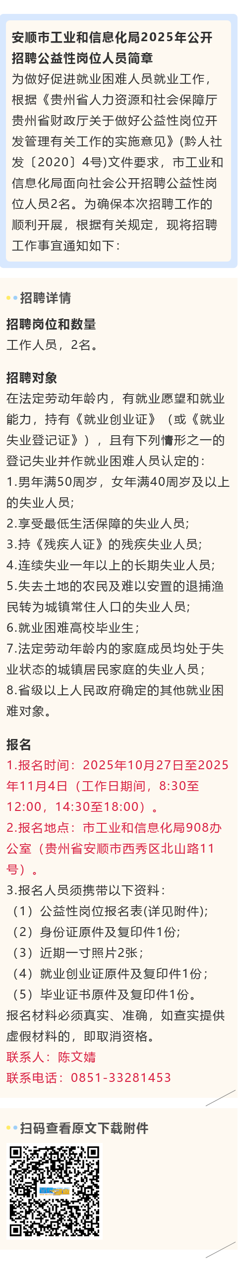 【政府机关】市工业和信息化局招聘!残疾人士可报!