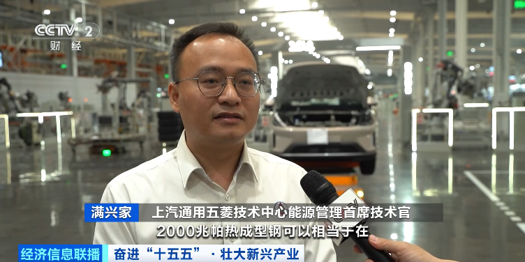 上汽通用五菱技术中心能源管理首席技术官 满兴家:2000兆帕热成型钢,相当于在指甲盖大小面积上承受20吨的压力,抗形变能力极强,进一步提升侧面碰撞防护的同时实现轻量化。