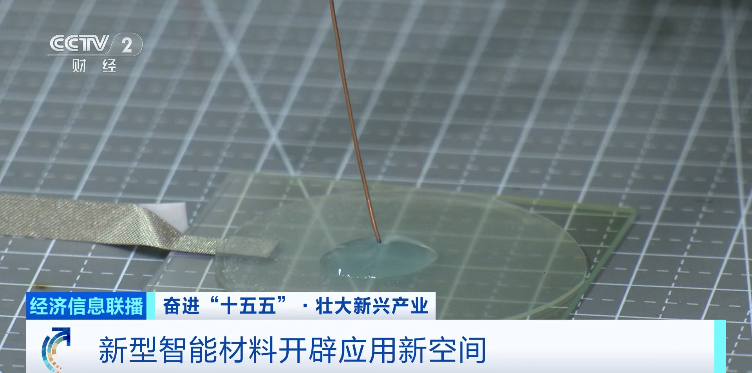 总台央视记者孙超:我手上拿着的这块轻薄柔软的材料,只要通上电就能自主变形,牢牢吸附物体,并且还能精准操控液滴,这就是西北工业大学最新研发的电活性界面增强智能材料。