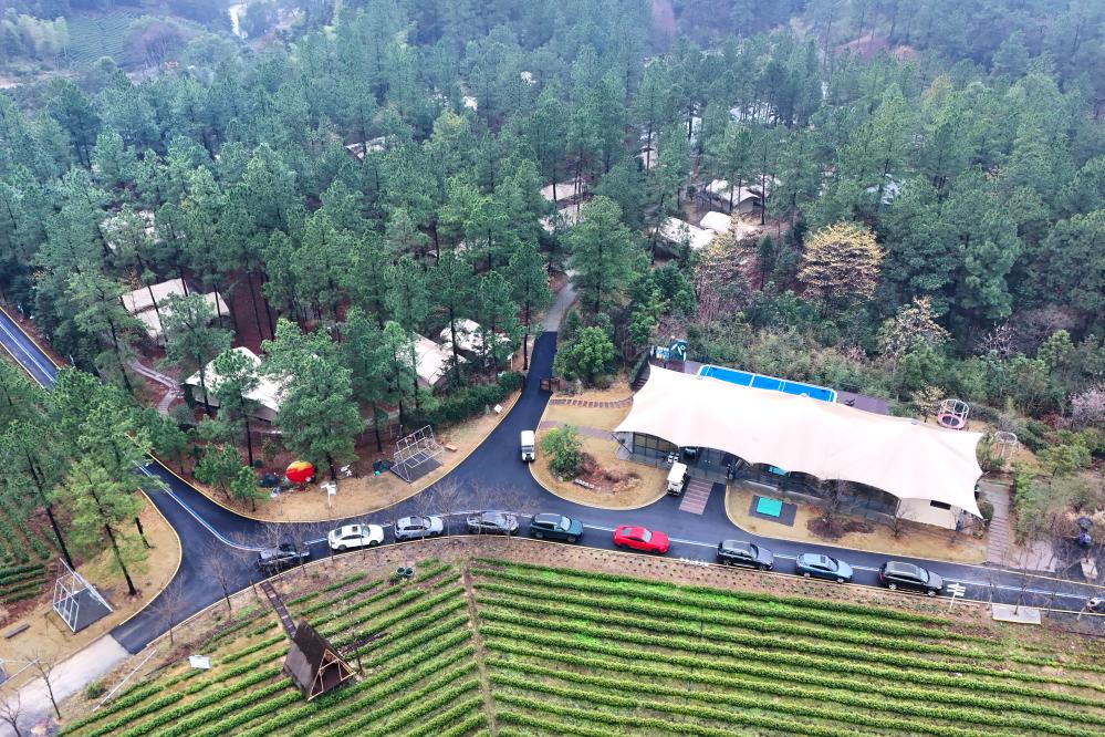 3月15日拍摄的浙江省湖州市安吉县九亩松风露营地(无人机照片)。新华社发(潘学康摄)