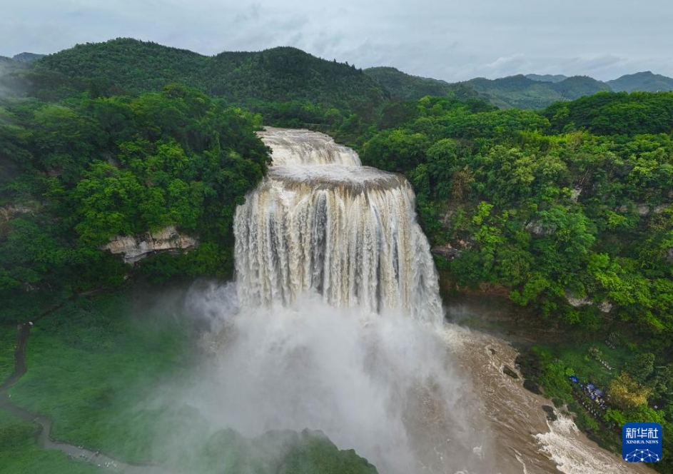 近日,位于贵州省安顺市的黄果树瀑布逐渐进入最佳观赏期,瀑布奔腾而下,蔚为壮观。