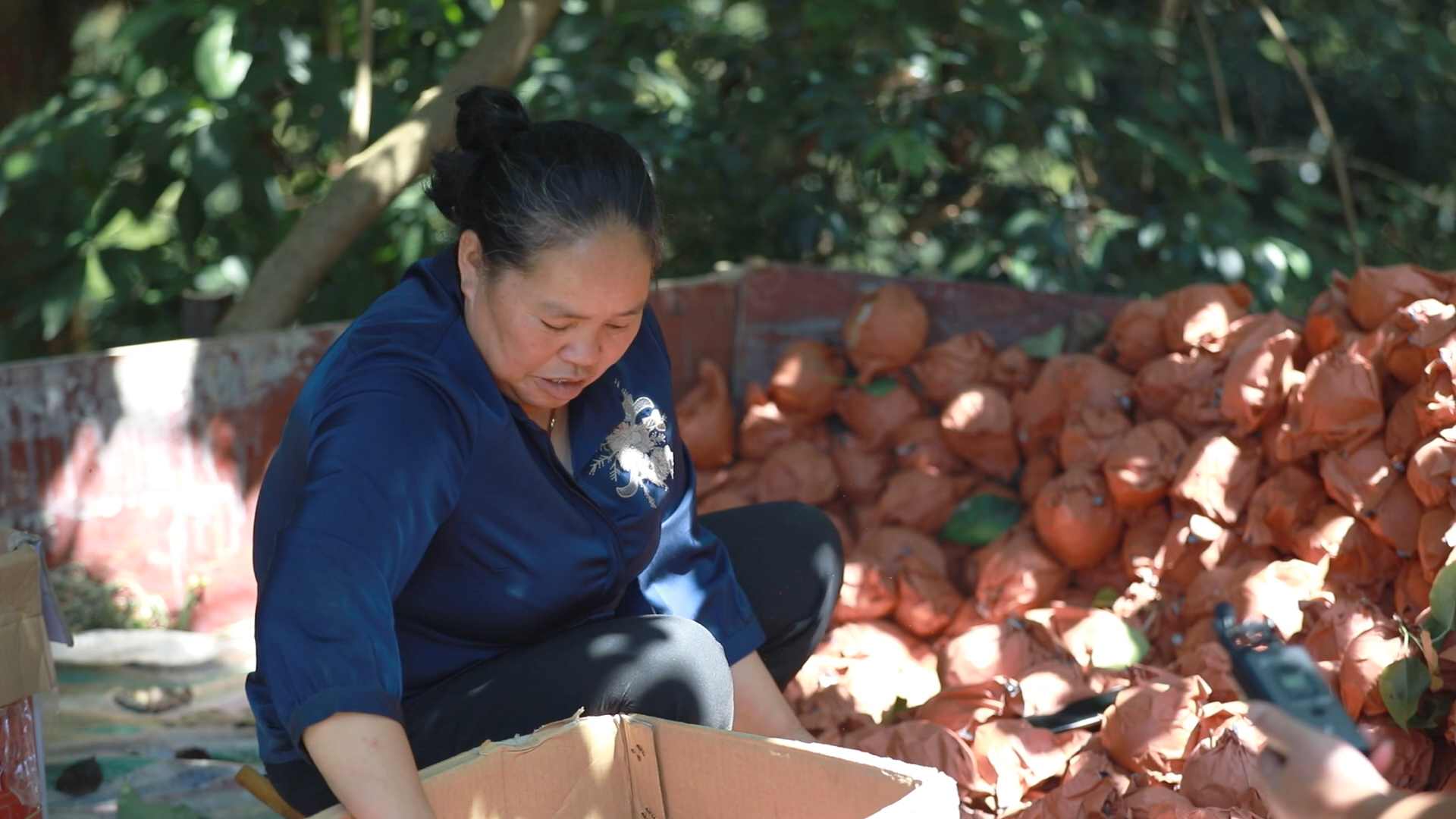 在高酿镇隆寨村,种植户杨芳池一家人正在抢抓时间采摘金秋梨,为已下单的零售商备货。采摘、选果、装箱、封箱、上车、运输,果园里俨然形成一条“黄金果”生产流水线。