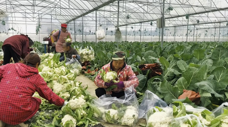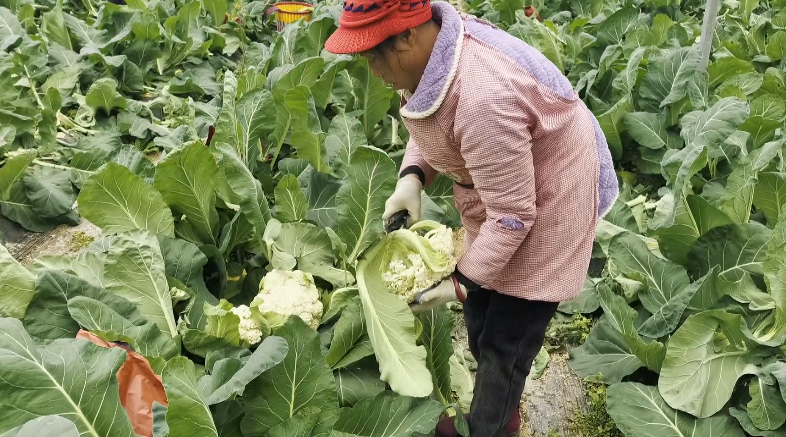 在万山区黄道乡百汇源蔬菜基地,工人们正忙着采摘、分拣花菜。基地通过精细化管护,为200亩花菜套上保暖袋,亩产达3000斤。目前,该基地已与5家大湾区企业建立稳定合作,2025年销售额达1200万元。