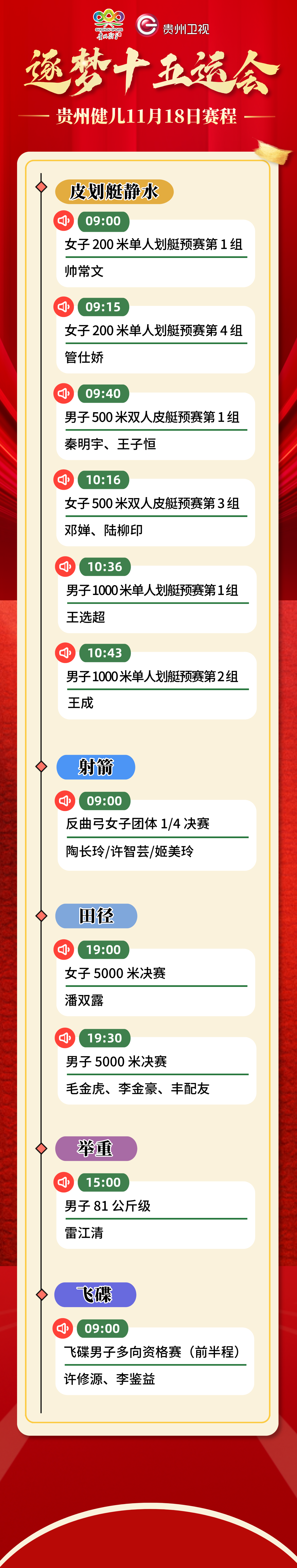 第十五届全运会今日赛程精彩来袭!一起期待贵州运动健儿们的出色表现!