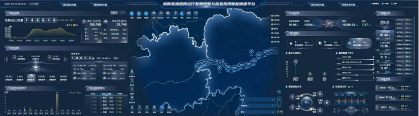 “湘黔通”湖南高速路网运行监测预警与应急指挥智能调度平台(图源:湖南交通运输)