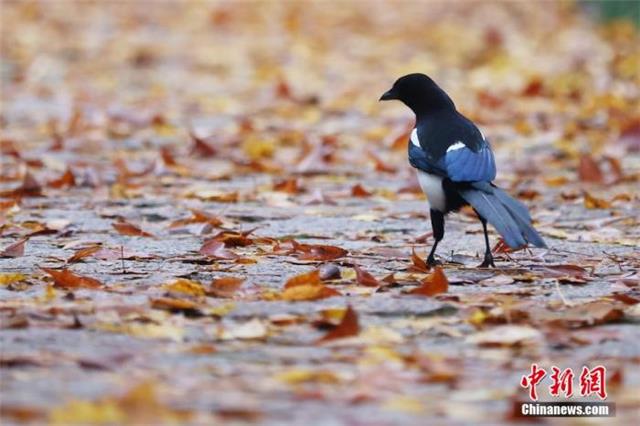 资料图:地上落叶铺满,鸟儿在此栖息。 泱波 摄