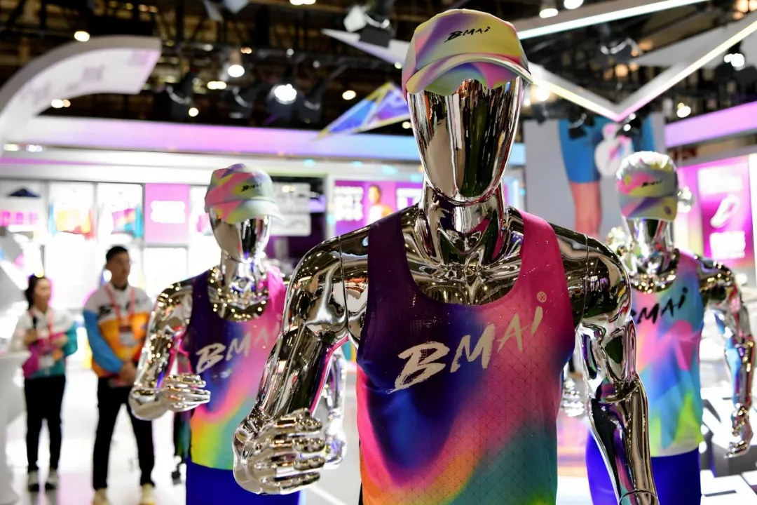 这是2025年1月2日在第六届中国马拉松博览会运动装备展区拍摄的体育运动服装。新华社记者 魏培全 摄