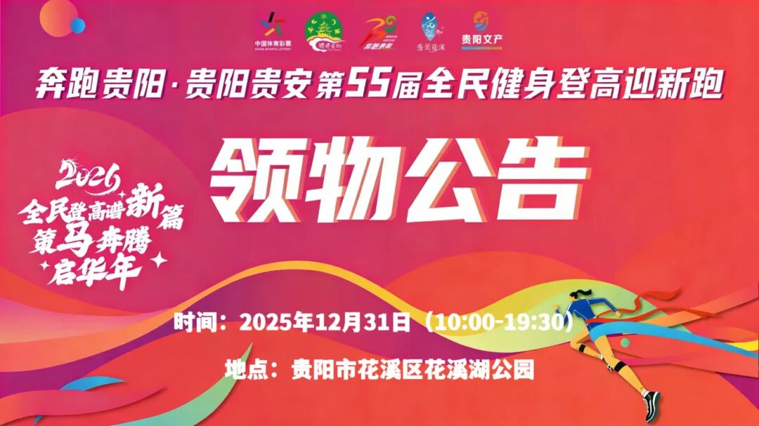 2026奔跑贵阳·贵阳贵安第55届全民健身登高迎新跑(主会场)将于1月1日在花溪湖公园开跑,为保障5000名选手便捷、有序领取参赛物品,特发布本公告。请各位选手务必仔细阅读,并按时到场。