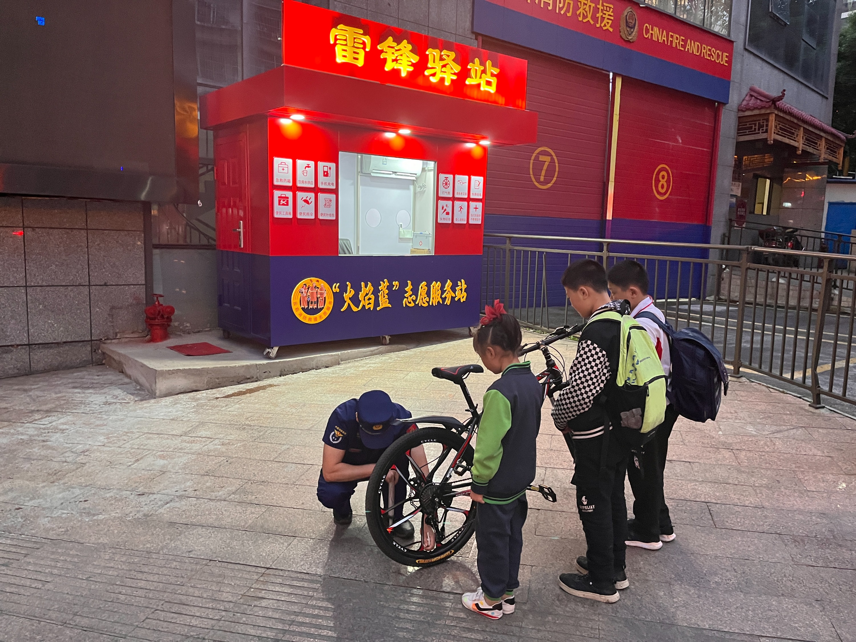 自贵开路消防救援站建队以来,每季度积极投身社区志愿服务,为老百姓提供消防宣传、消防设施检查等便民服务,每年到各村居委困难家庭开展慰问等,让辖区老百姓倍感温暖。如今,“火焰蓝”志愿服务站的建设更是锦上添花,成立第一天,值守消防队员就帮助不少群众解决问路、歇脚、失物招领等问题,并不忘初心为民服务,积极免费为群众提供急救药箱、饮用水、手机充电、打气筒、便民工具箱等服务,赢得不少群众的赞赏。