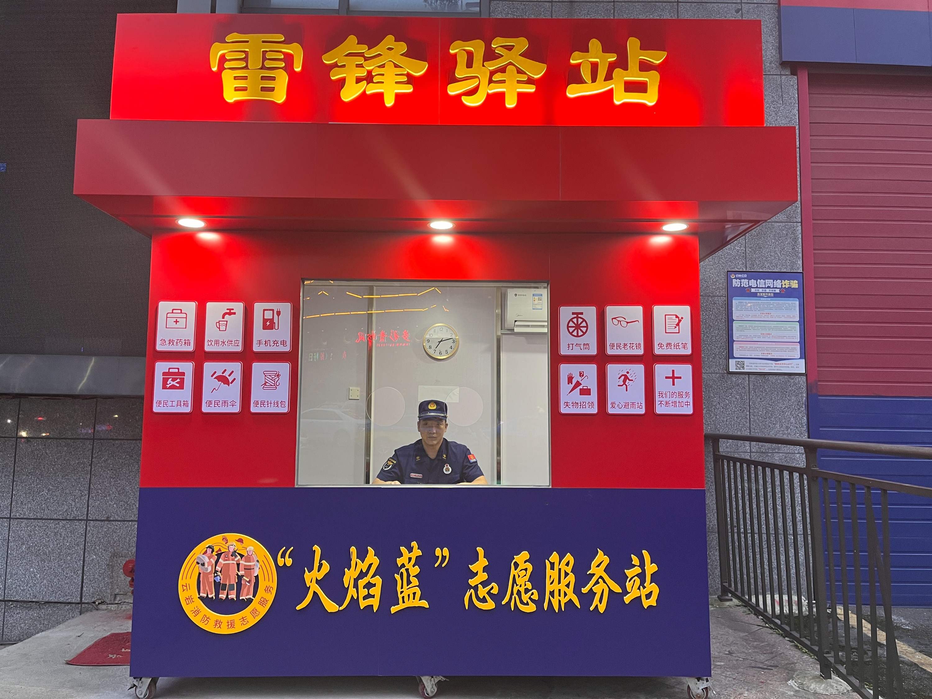 为践行习近平总书记“对党忠诚、纪律严明、赴汤蹈火、竭诚为民”训词精神,深刻把握雷锋精神的时代内涵,发扬雷锋精神在新时代的光芒。贵阳市云岩区消防救援大队积极走访,与相关部门协商在贵开路消防救援站路口设立一个能够长期服务人民的“火焰蓝”志愿服务站,以此来帮助人民群众,增加社会荣誉感,计划一经提出,双方迅速达成一致。最后,贵开路消防救援站在云岩消防救援大队党委帮助下,将辖区街道“核酸亭”进行改造,成立了全省首个“火焰蓝”志愿服务站。