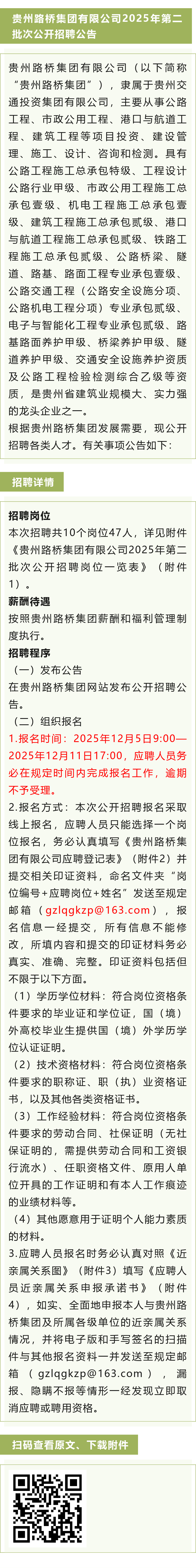 【国企】贵州路桥集团有限公司10岗招聘47人!报名截止日期:2025年12月11日!