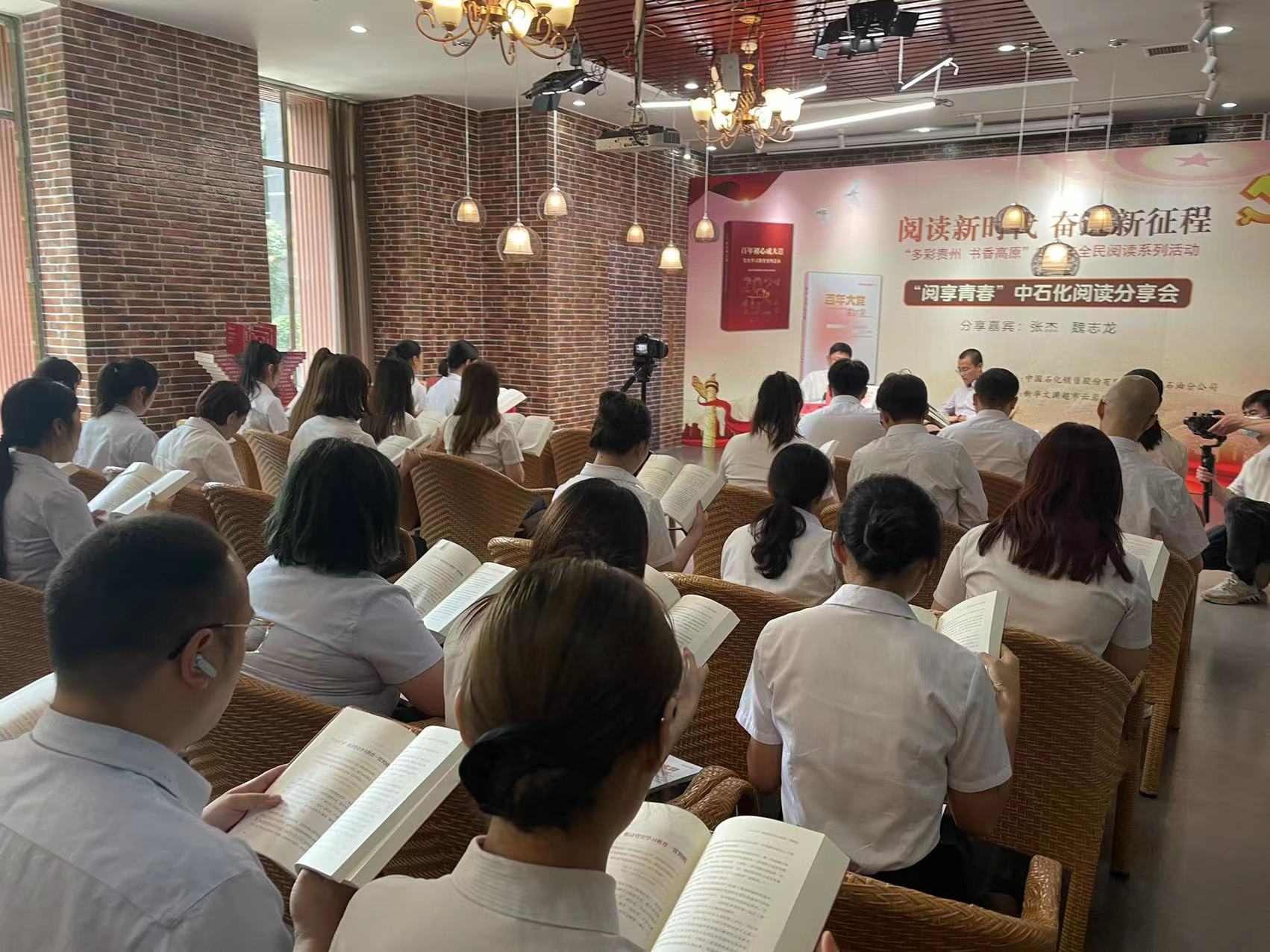 活动邀请到中国石化贵州石油分公司党委副书记、纪委书记、工会主席张杰,中共贵州省委党校社会学部副教授魏志龙到现场为石化的青年员工们带来一场关于党史的阅读分享。