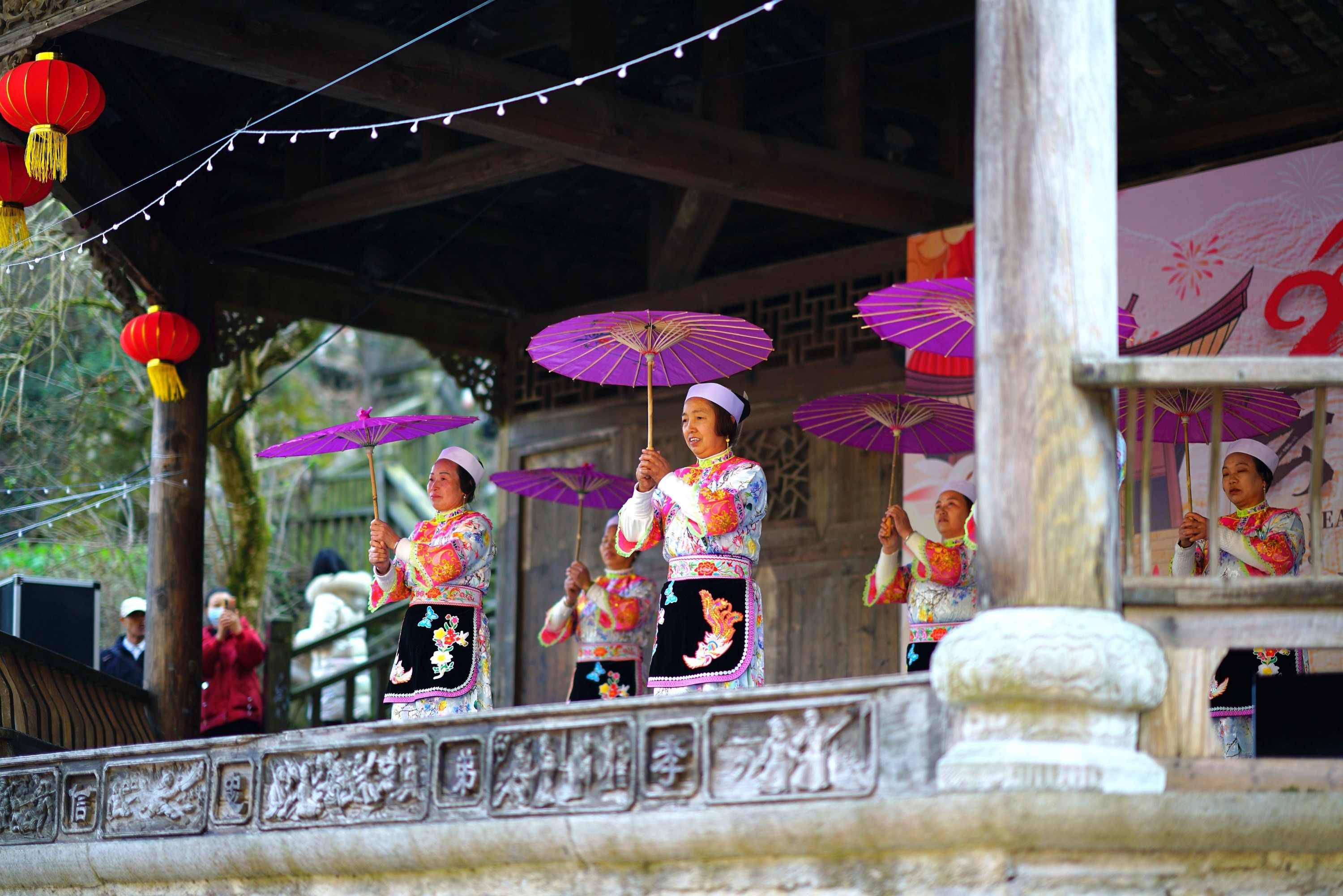 凤阳汉服、雕花窗棂、传统地戏、鬼面傩雕,留存着大明朝的“时光剪影”,向游客叙说“明朝那些事儿”。作为国家AAAA级旅游景区,云峰屯堡依山而建,石板古道穿屯而过,600多年的屯堡文化与村民生活交织,让云峰屯堡景区成为了安顺文化旅游融合发展的典型代表。今年春节,张灯结彩的云峰屯堡焕然一新,推出“云山屯上屯年味”主题迎春文化活动,屯堡山歌、茶馆驿站、跳花灯等文旅产品提炼当地原生态文化内涵,集合专业演员与沉浸式互动表演,在景区各个角落为游客带来了全新体验,实现“五步一美景,十步一玩法”。云峰屯堡旅游投资开发公司副总经理余红蕾表示,此次“云山屯上屯年味”活动迎来“开门红”更加坚定了景区旅游复苏的信心,接下来他们将在保护传承屯堡文化的基础上,通过在景区设置互动式剧场、开展屯堡服饰换装体验等业态,真正让游客融入其中,感受贵州传统文化的魅力。