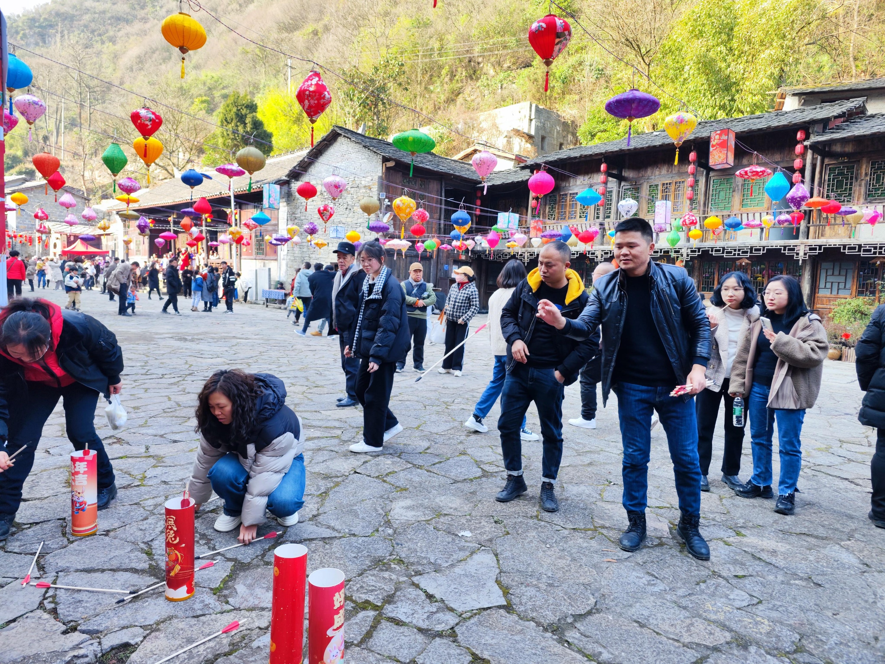 大年初三一早,游客袁海一家驱车来到安顺市云峰屯堡景区打卡过年。翠木环绕、山歌悠扬,独特的屯堡风情与完善的旅游服务相融合,让各地游客陶醉其中。“听说这里有活动,我特意带上父母过来感受下,新春投壶、派送红包,一路上年味十足。”袁海一边吃着松糕粑一边说,景区的服务也很到位,布置得井然有序,屯堡嬢嬢们亲切热情。