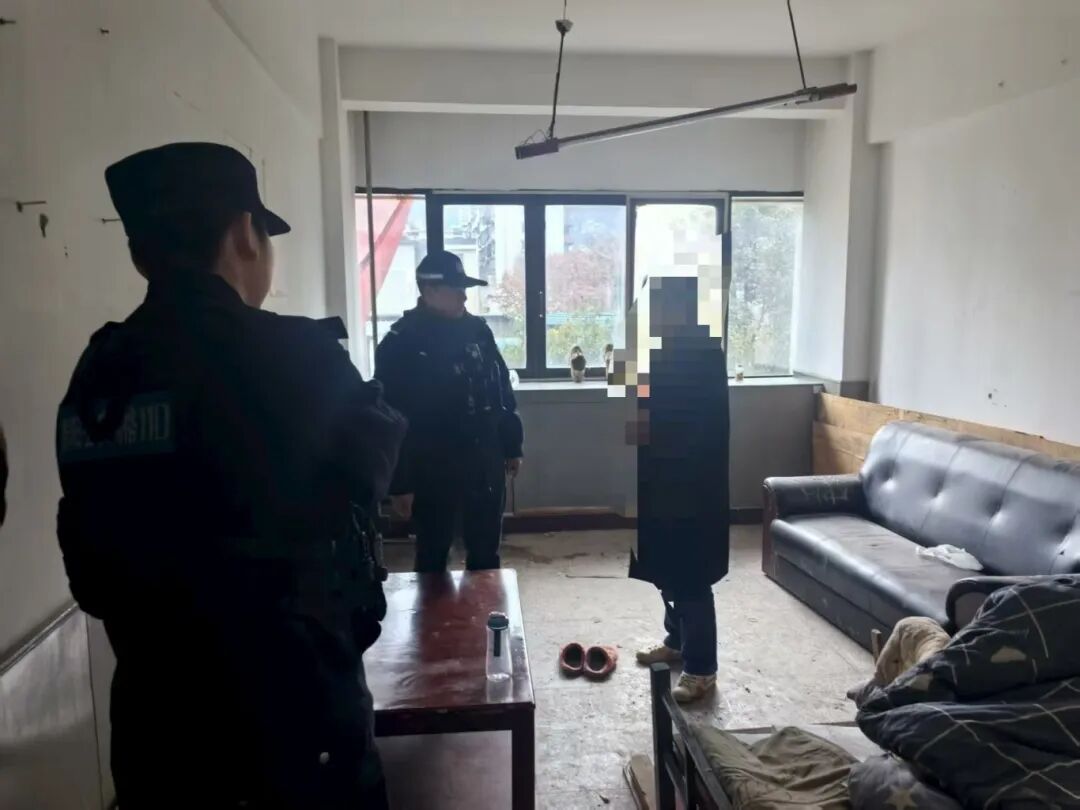 接到警情后,南明十网格民警余进带领队员迅速抵达现场。在昏暗的通道内,他们见到蜷缩成团的老人,反复询问却始终得不到回应。余进立即安排队员分头排查楼层安全隐患、做好现场警戒,自己则蹲守在老人身边耐心沟通。十余分钟的温情坚守后,老人才缓缓开口,称其从陕西而来、身无分文,无奈暂住在此。
