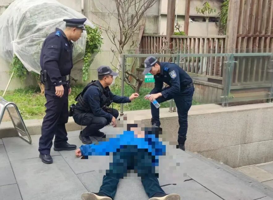 筑城广场作为人员密集的核心区域,是“高峰值点”的重点值守部位。冬日的寒风中,广场楼梯口突然传来一阵惊呼,一名男子毫无征兆地晕倒在地,情况危急。正在附近巡逻执勤的王胜,带领队员张东、徐行、韦实祥火速上前施救。