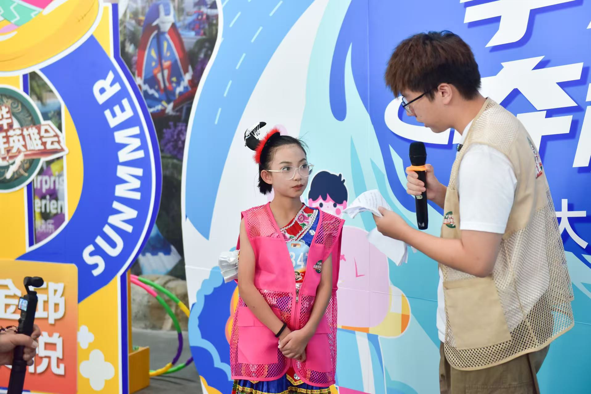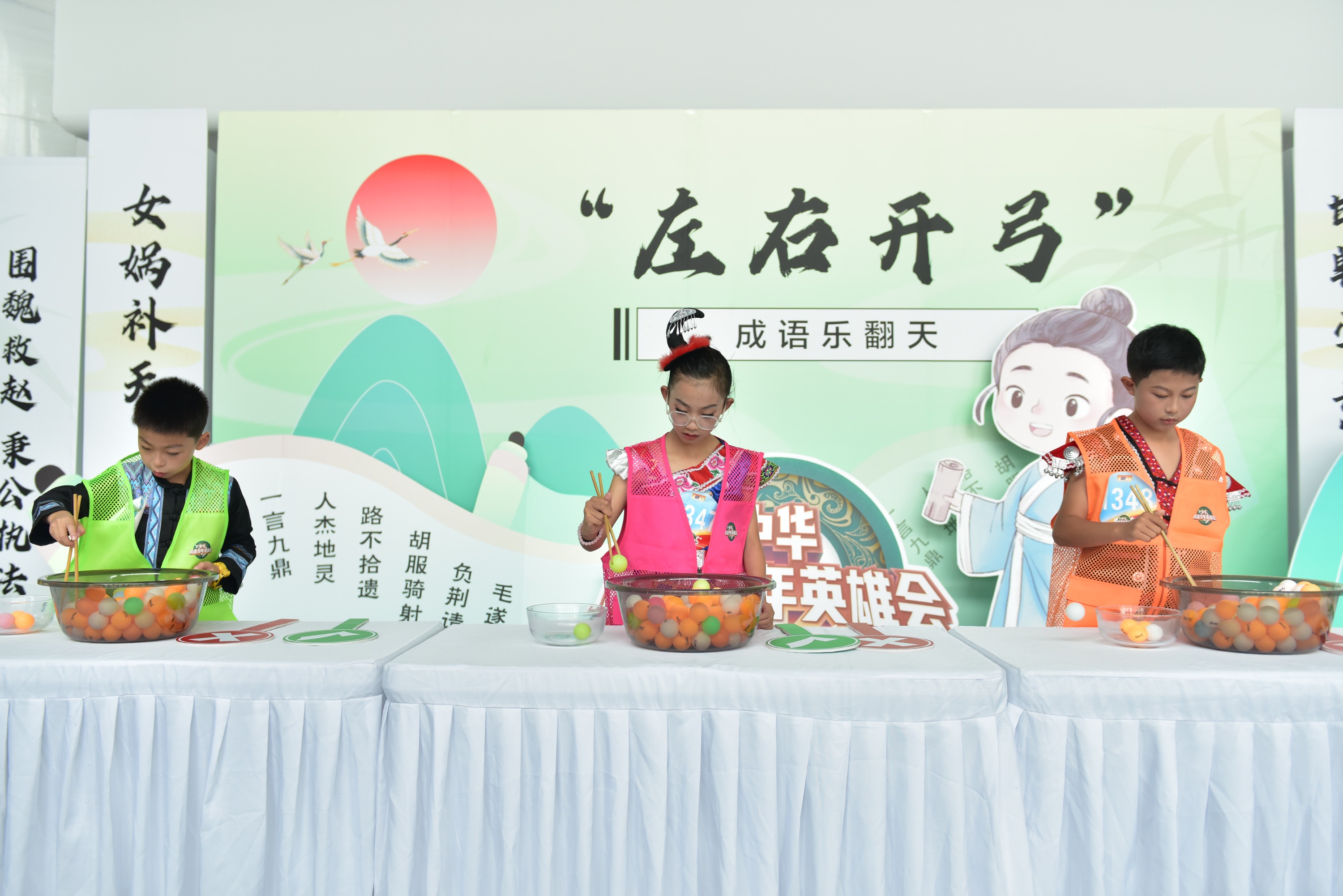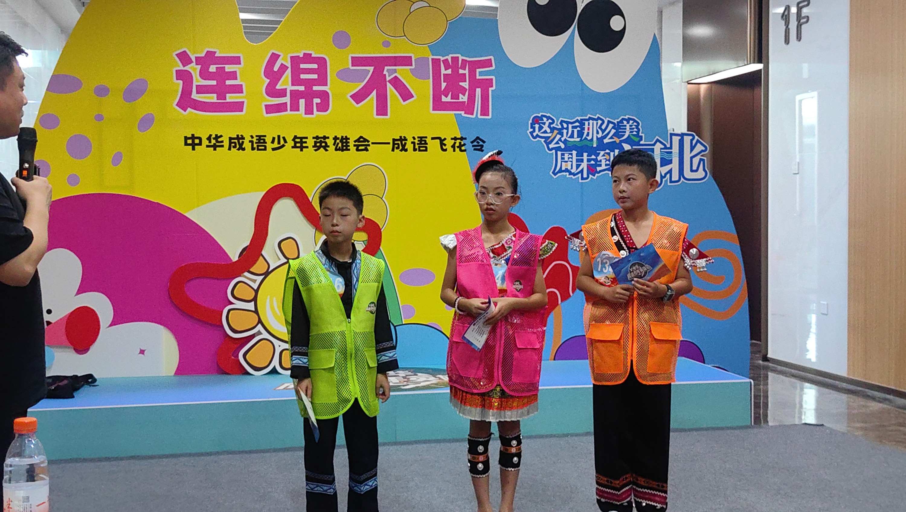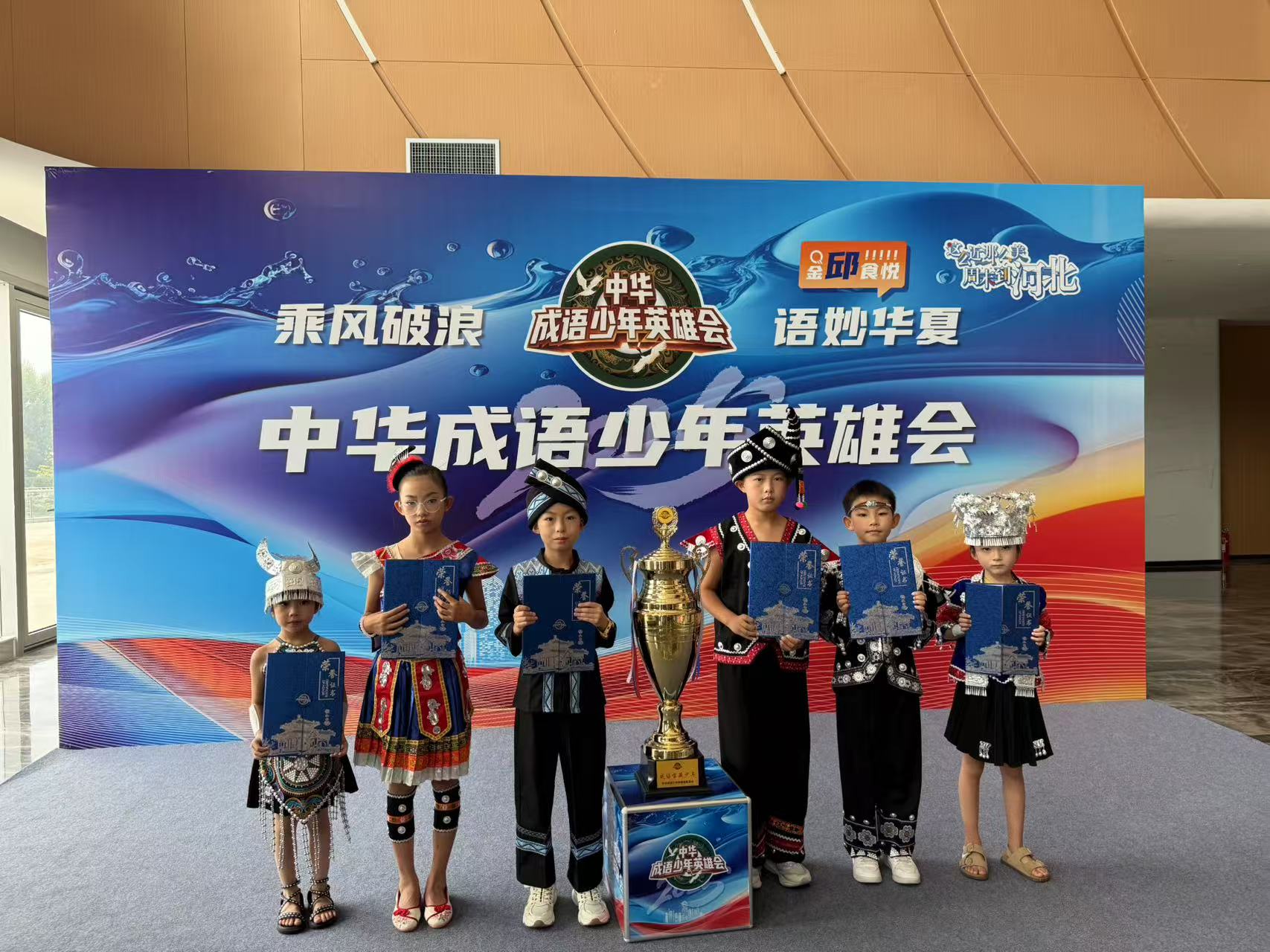 清晨,六名少年身着多彩贵州少数民族服饰,以“走遍大地神州,醉美多彩贵州”与“这么近、那么美、周末到河北”主题手举牌亮相《中华成语英雄会》全国青少年晋级赛现场。作为中华文化促进会主办的年度文化盛事,本届活动以“乘风破浪 语妙华夏”为主题,吸引全国万名青少年报名,据悉2000名选手晋级线下赛,最终前30名将参与芒果TV微综艺《成语侠的研学江湖》录制。