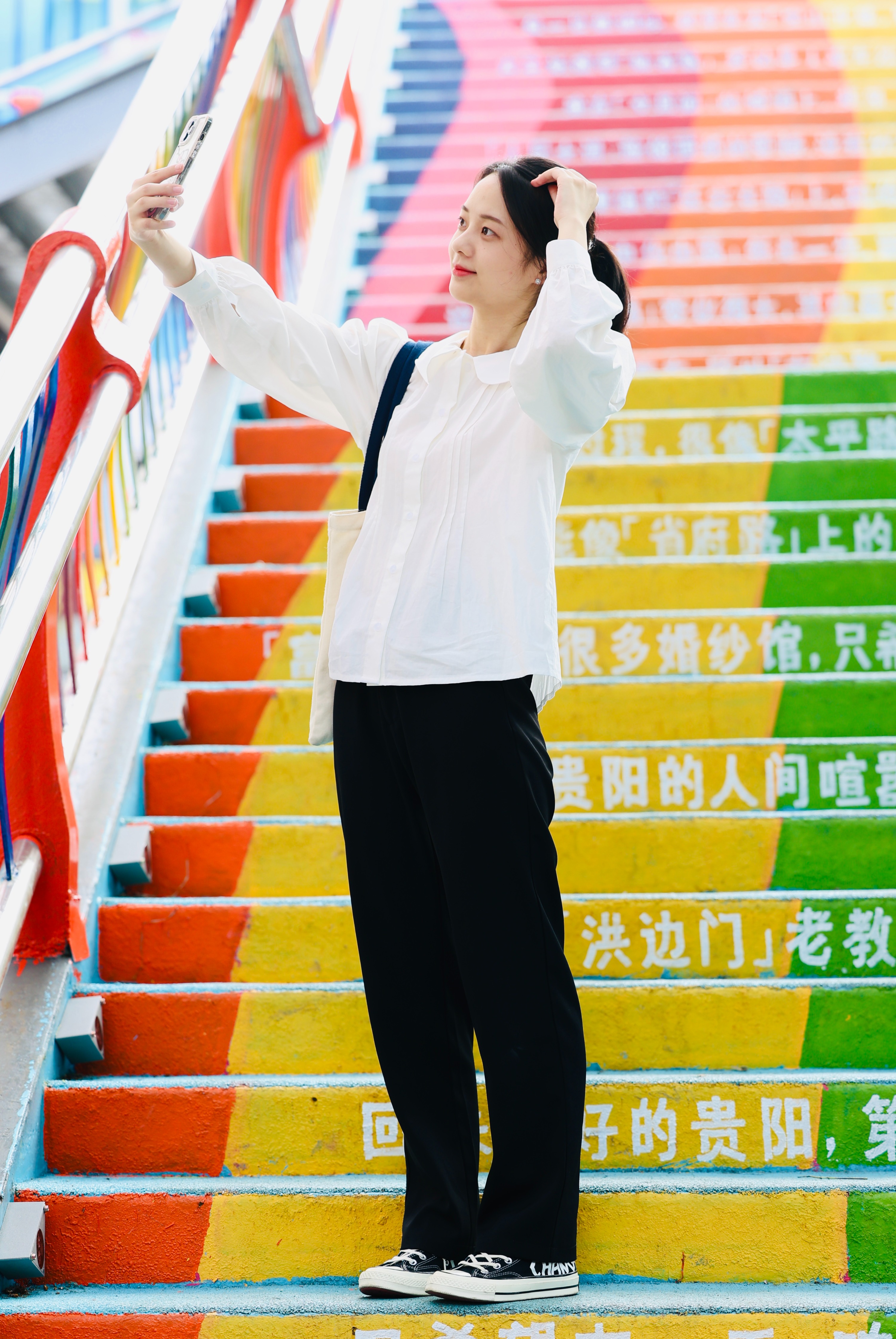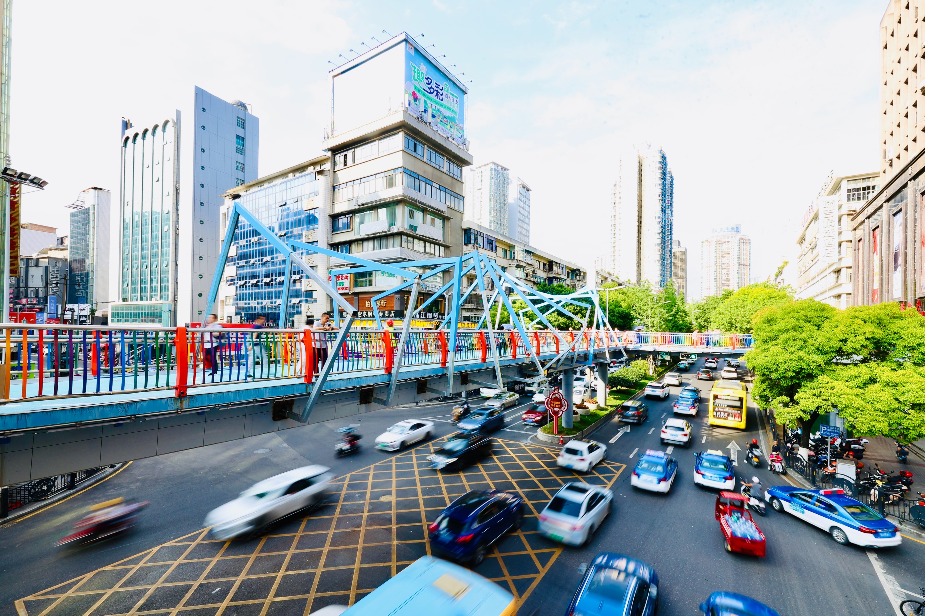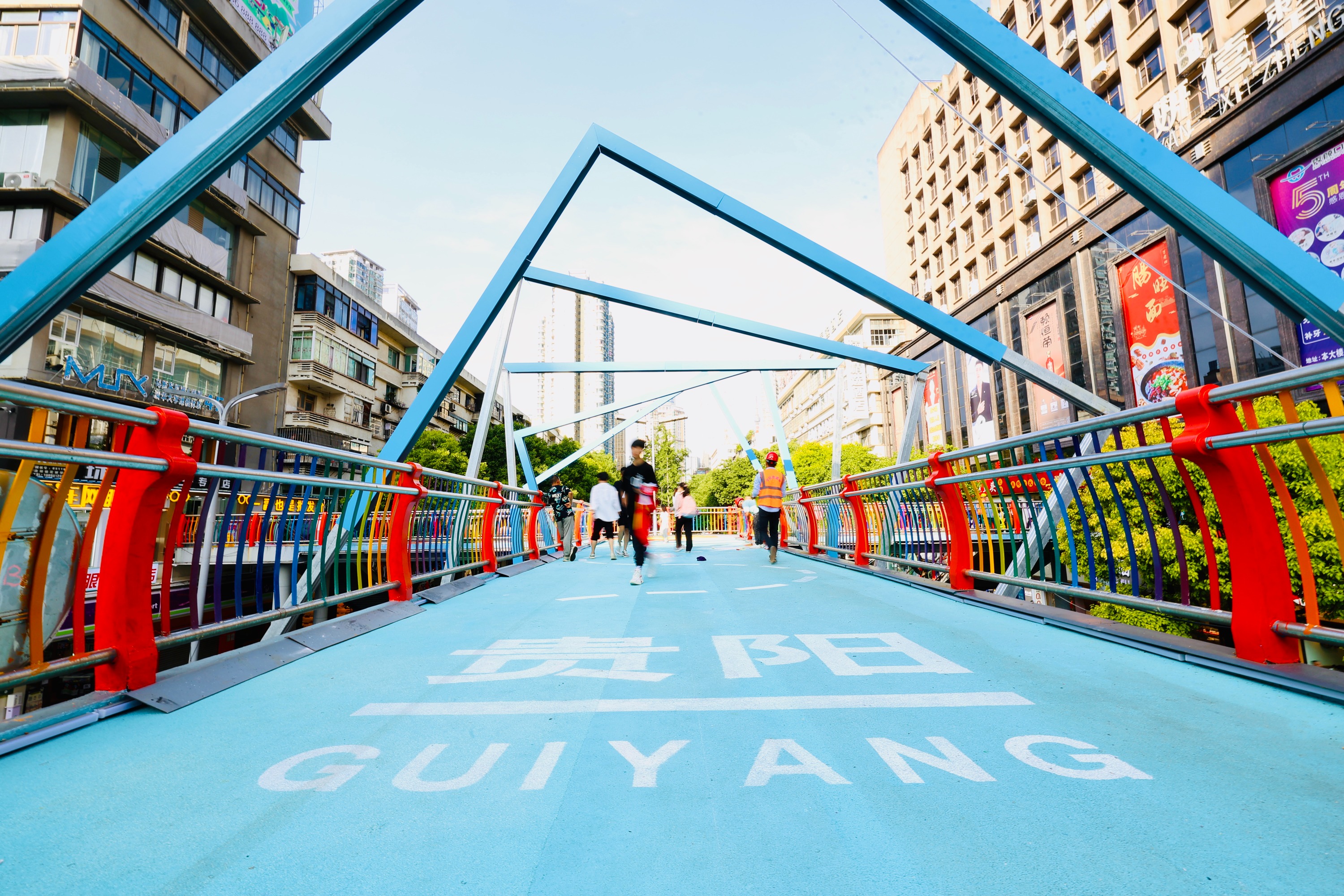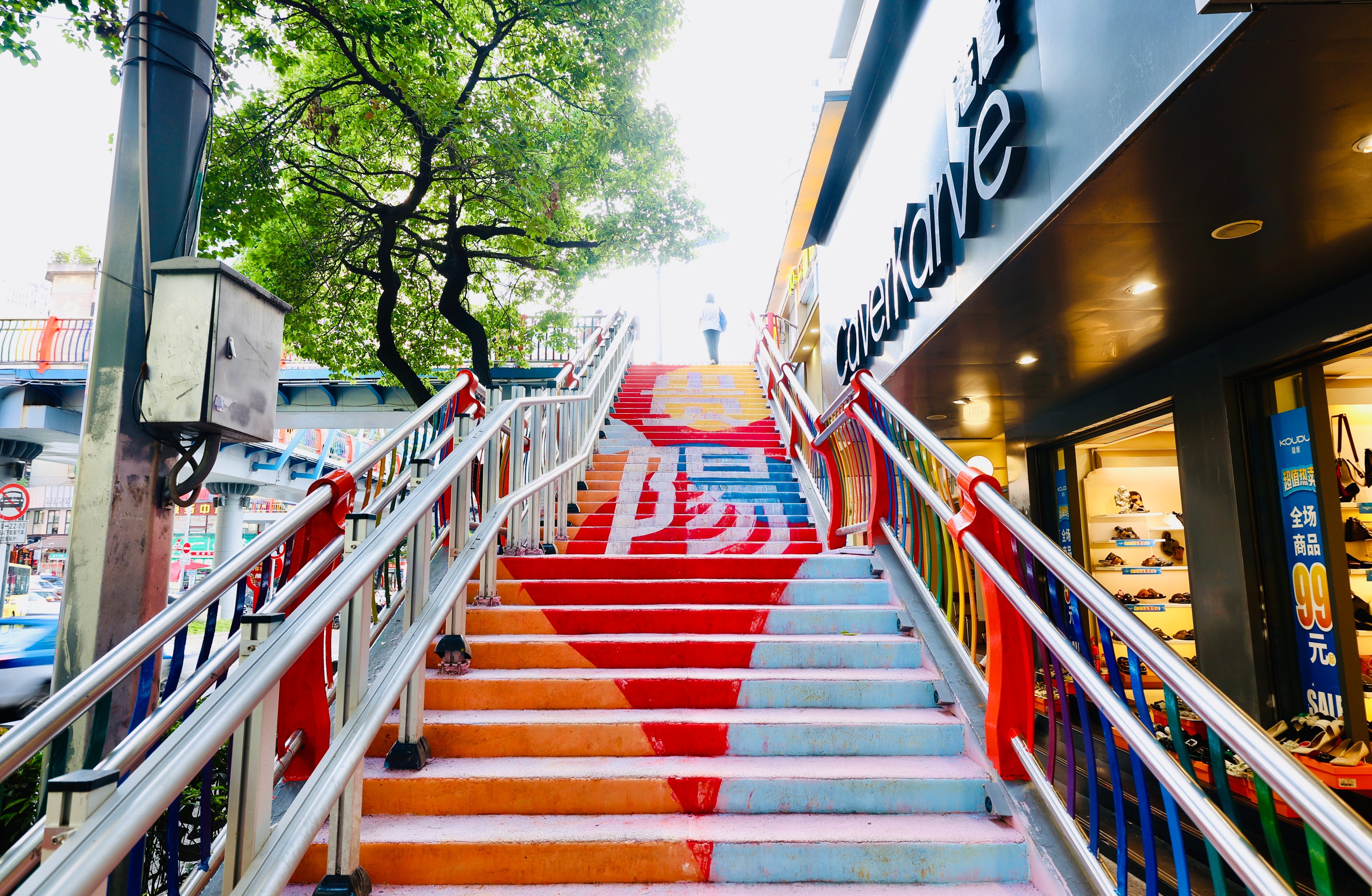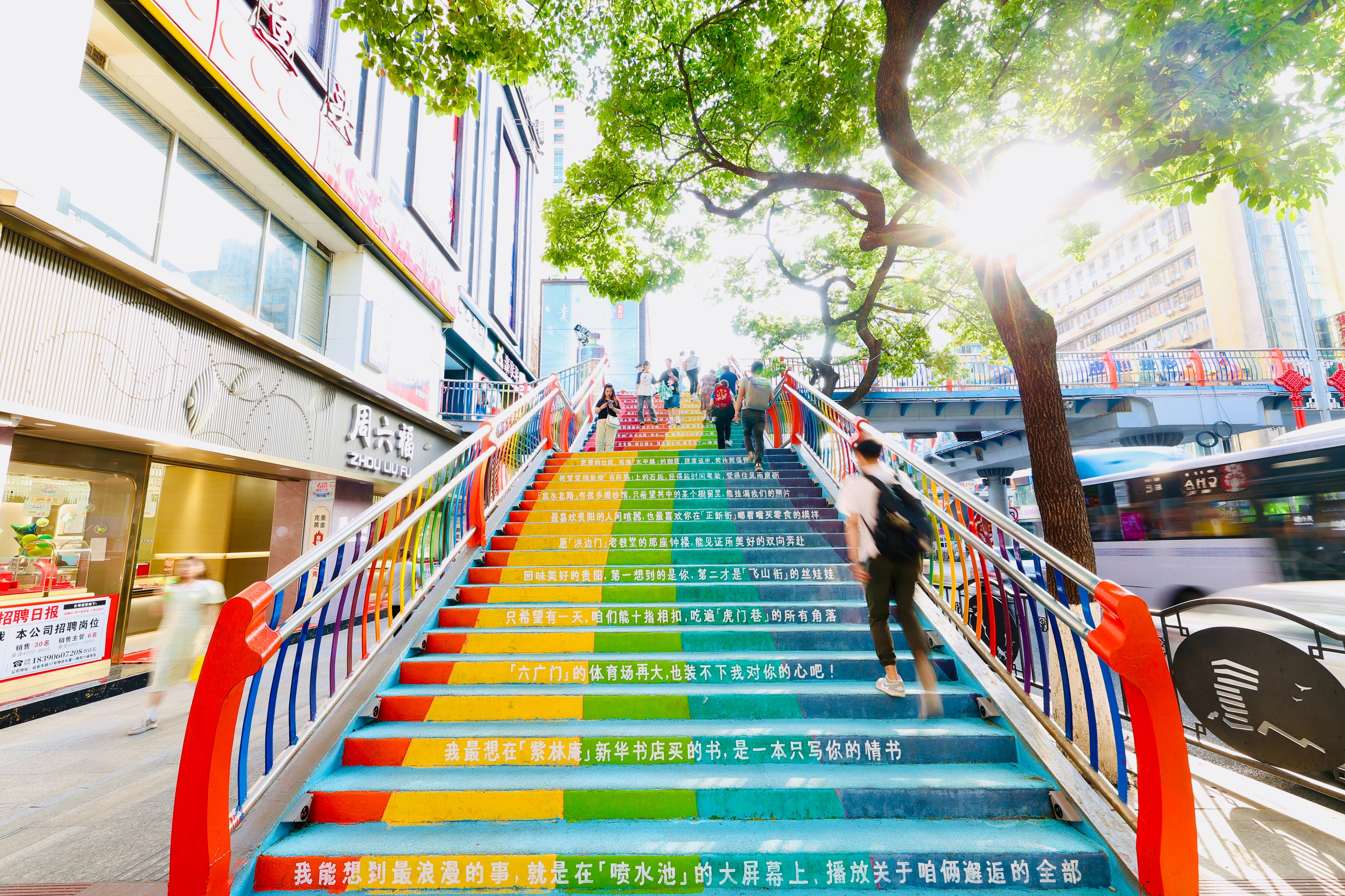 为了在闹市区增添更多现代气息和年轻活力,云岩区将陕西路过街天桥重新粉刷。红橙黄绿青蓝紫,五颜六色的楼梯呈现在眼前。