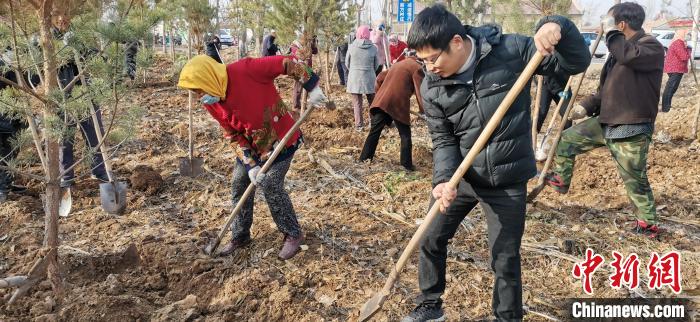 汤振威和村民一同植树。 受访者 供图