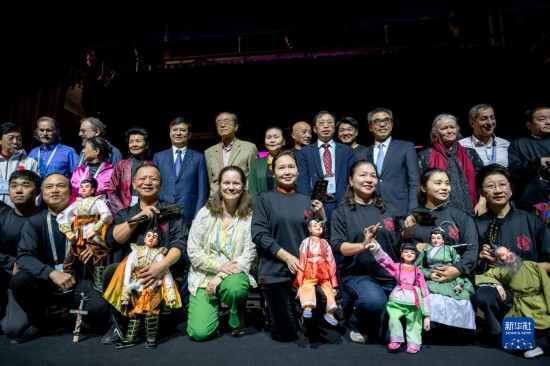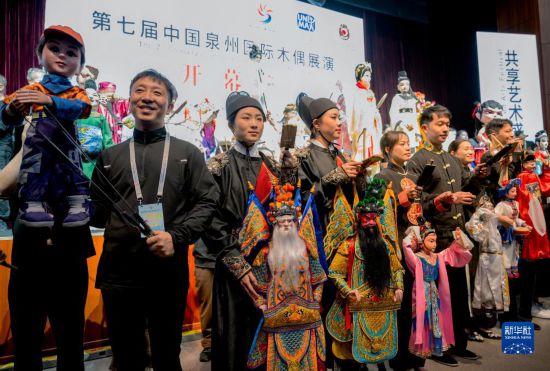 在第七届中国泉州国际木偶展演开幕前,艺术家们齐聚一堂。新华社记者魏培全摄
