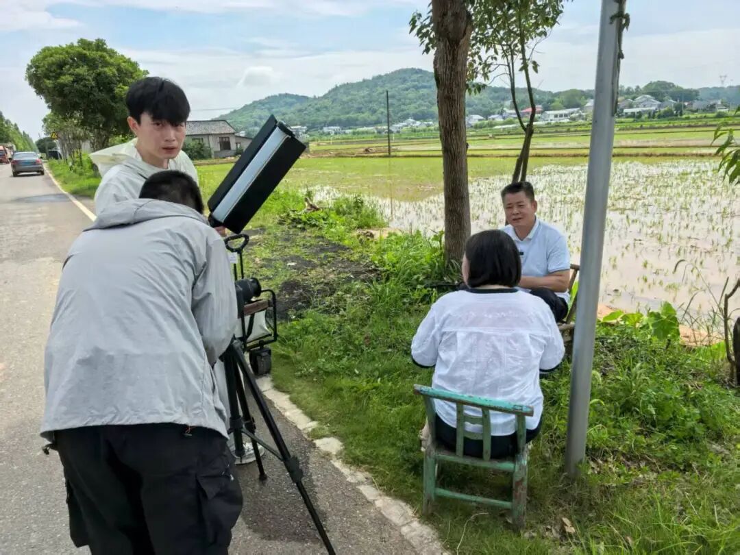 ▲长沙人民广播电台新闻广播记者在龙王庙村采访