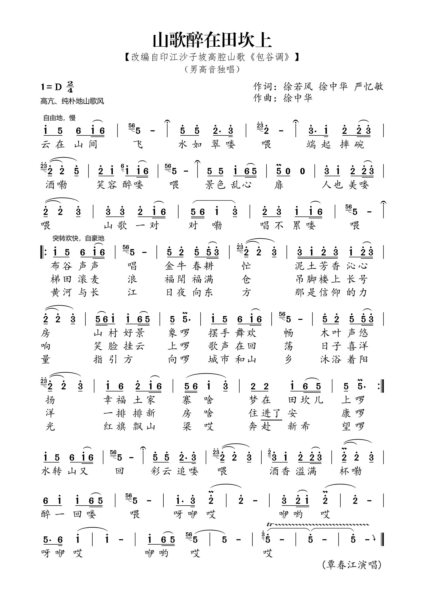 《原创贵州·听见》和你分享由印江自治县文体广电旅游局出品,徐若风、徐中华、严忆敏作词,徐中华作曲,覃春江演唱的《山歌醉在田坎上》,歌里描述着山河安好,乡村一片好景象。放歌一曲,醉了山涧、醉了田野、醉了勤劳淳朴的土家儿女。