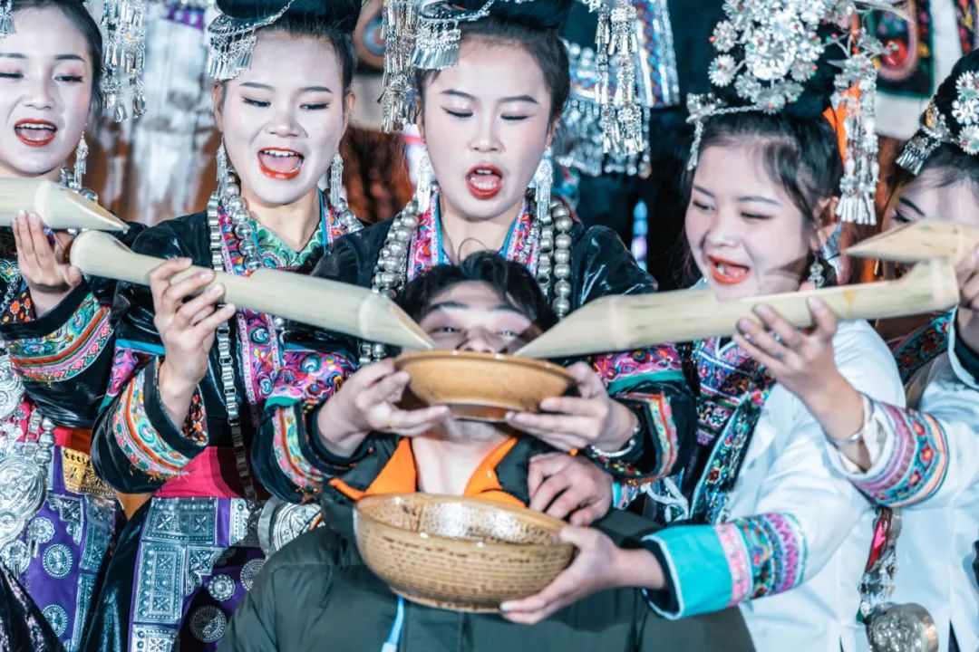 侗族人民认为在五谷丰登、六畜兴旺、一切农耕完成后,新的一年即将到来,便是“年”。节日期间,还有丢猪脚、打糍粑、抬粑槽、民族大团结非遗盛装巡游、侗族大歌、抬官人、千人合拢宴、祭萨大典、侗戏、踩歌堂吹芦笙等等热闹欢快的民俗趣味活动。11月29日,一同走进侗乡之窗——黎平,沉浸式体验特色中国侗年!
