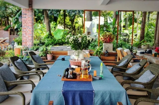 客栈由传统布依族院落改建而成,共三层。开窗即风景,出门即人情!其设计重视自然之美,无论是建筑设施还是业态,都以生态环保为出发点。在保留原生态树木、水池、山石、花草的基础上,对自然物体进行绿色景观设计,减少对环境的破坏。2021年,被全国旅游标准化技术委员会评定为全国甲级旅游民宿。