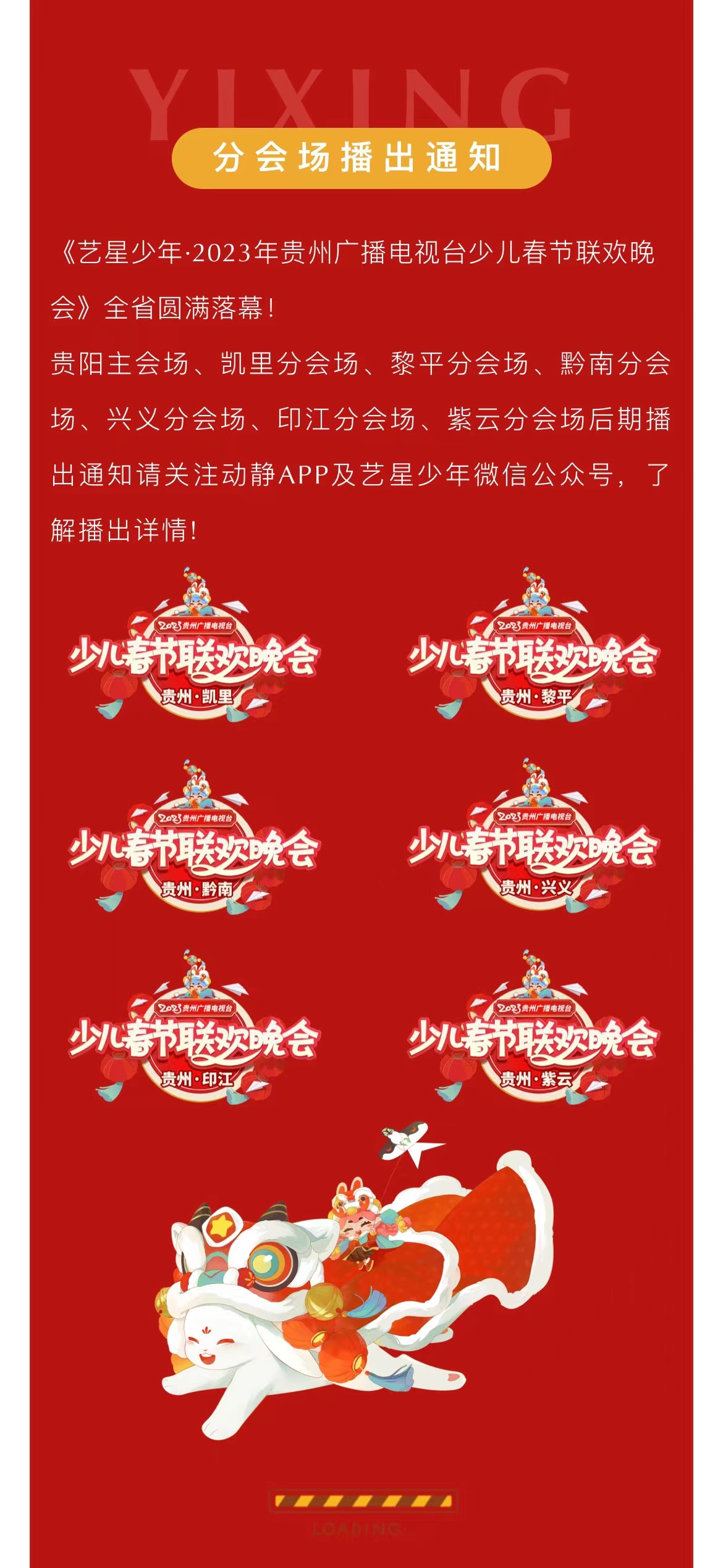 《艺星少年·2023年贵州广播电视台少儿春节联欢晚会》分会场播出通知!