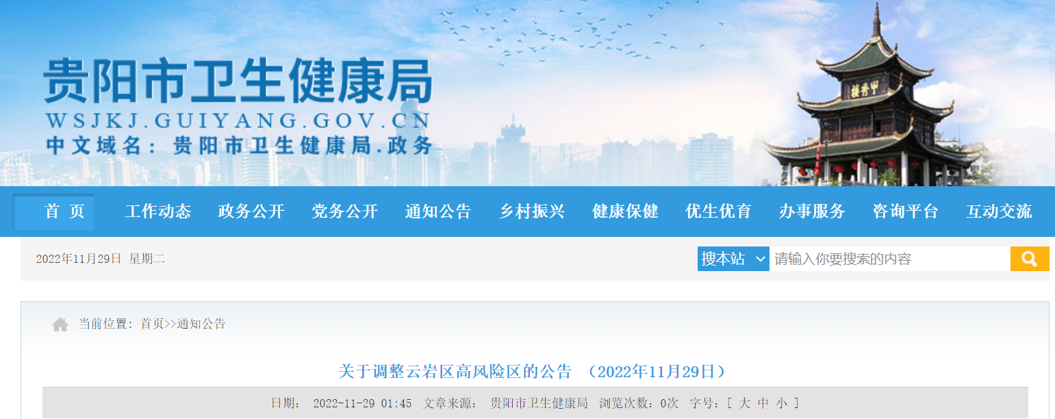 关于调整云岩区高风险区的公告 (2022年11月29日)