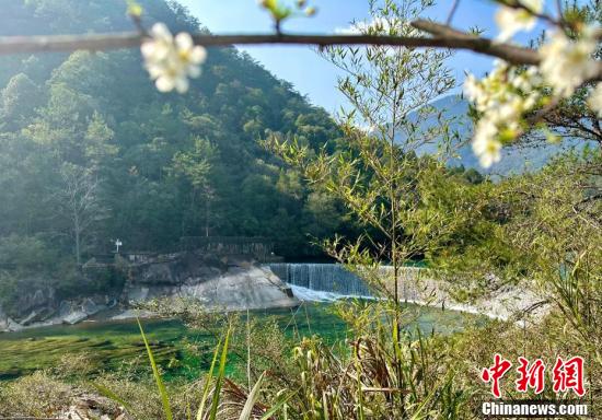 武夷山国家公园野樱花绽放,与青山碧水相映成趣。